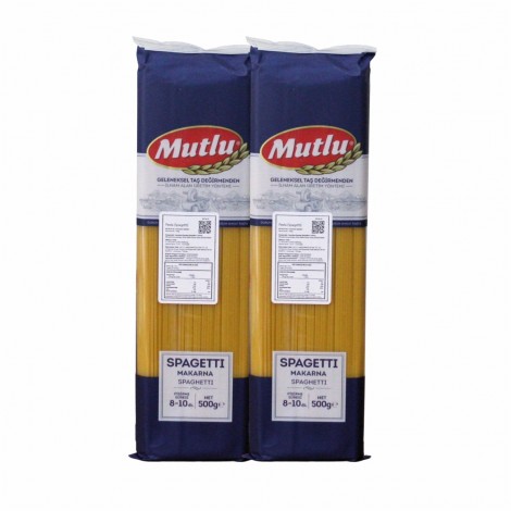 Mutlu spaghetti merupakan spaghetti yang berasal dari gandum durum semolina 100% berkualitas. Teksturnya kenyal dan lembut serta tidak gampang hancur saat dimasak. Biasa dibuat untuk hidangan spaghetti bolognese hingga spaghetti carbonara dijamin enak.